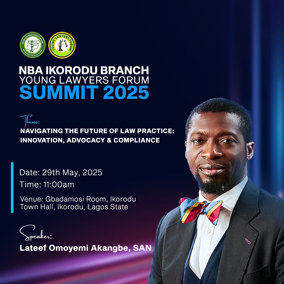 3 thoughts on “LATEEF OMOYEMI AKANGBE, SAN SENDS GOODWILL MESSAGE TO THE YOUNG LAWYERS’ FORUM (YLF) OF IKORODU BRANCH ON THE OCCASION OF ITS 2025 SUMMIT – SAYS YOUNG LAWYERS MUST EMBRACE INNOVATION WITH INTEGRITY AND BOLD ADVOCACY.